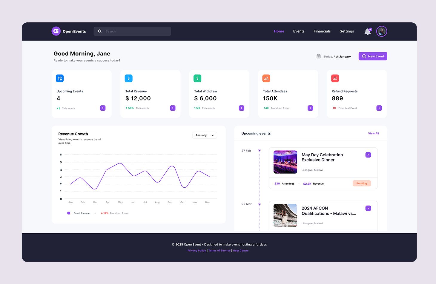 A simple platform to create, manage, and book events online.